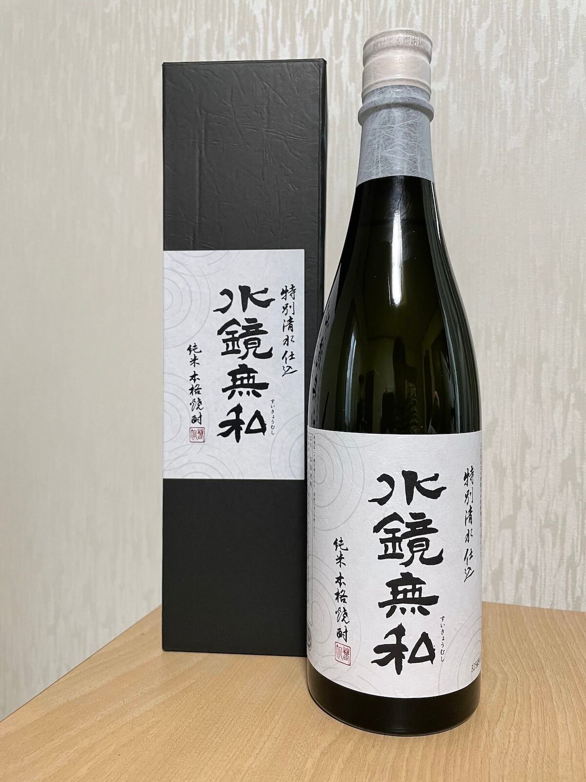 白麹と焼酎酵母を使用し、じっくりと低温発酵させて仕上げた「特別清水仕込 水鏡無私」。澄んだ香りとすっきりとした飲み口が特徴の、どなたにも飲みやすい純米焼酎です。仕込み水には、良質な天然水を分子レベルまで整えた“特別清水”を使用し、雑味のない上質な味わいを引き出しています。